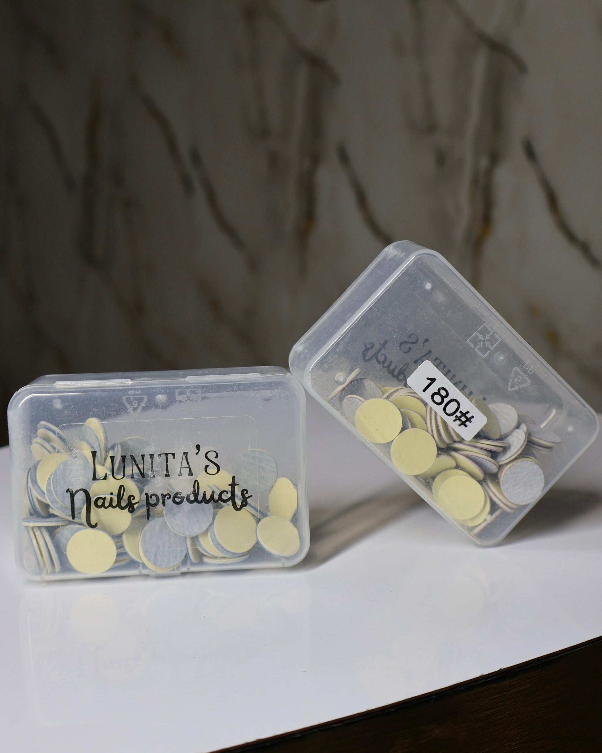 Lima desechable de grano 180, recomendada para nivelar y suavizar la piel en la pedicura rusa. Ofrece un balance ideal entre abrasividad y acabado, facilitando el trabajo en zonas medianas.