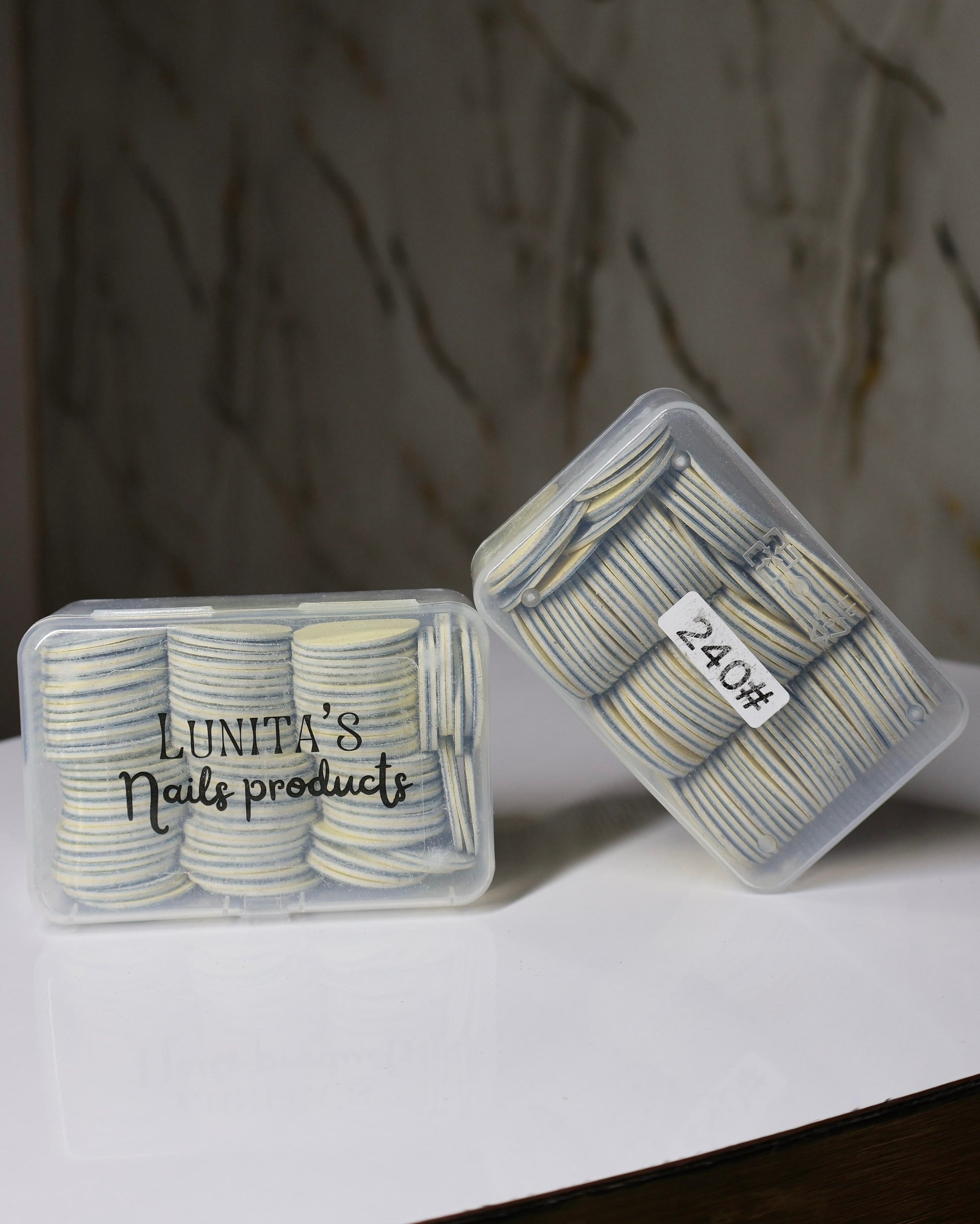 Lima desechable de grano 240, perfecta para el acabado final en pedicura rusa. Su textura suave permite dejar la piel lisa y uniforme, logrando un resultado profesional y pulido.
